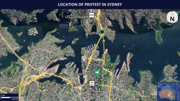 The turnout in the gathering in Melbourne is likely to range in the mid-to-high dozens, given the mobilization capabilities of CPSU Victoria. Participation in the Sydney protest is anticipated to range in the low–to–mid dozens, considering the limited resonance of the issue in Australia. As part of the standard security protocol, the authorities are likely to bolster security measures at the aforementioned locations in Melbourne and Sydney by deploying police personnel to monitor the proceedings. Both demonstrations are anticipated to transpire peacefully, considering the low sensitivity of the issues in the country. Localized pedestrian and vehicular travel disruptions are anticipated in the vicinity of the protest sites due to the expected turnout and related security measures on December 13.
