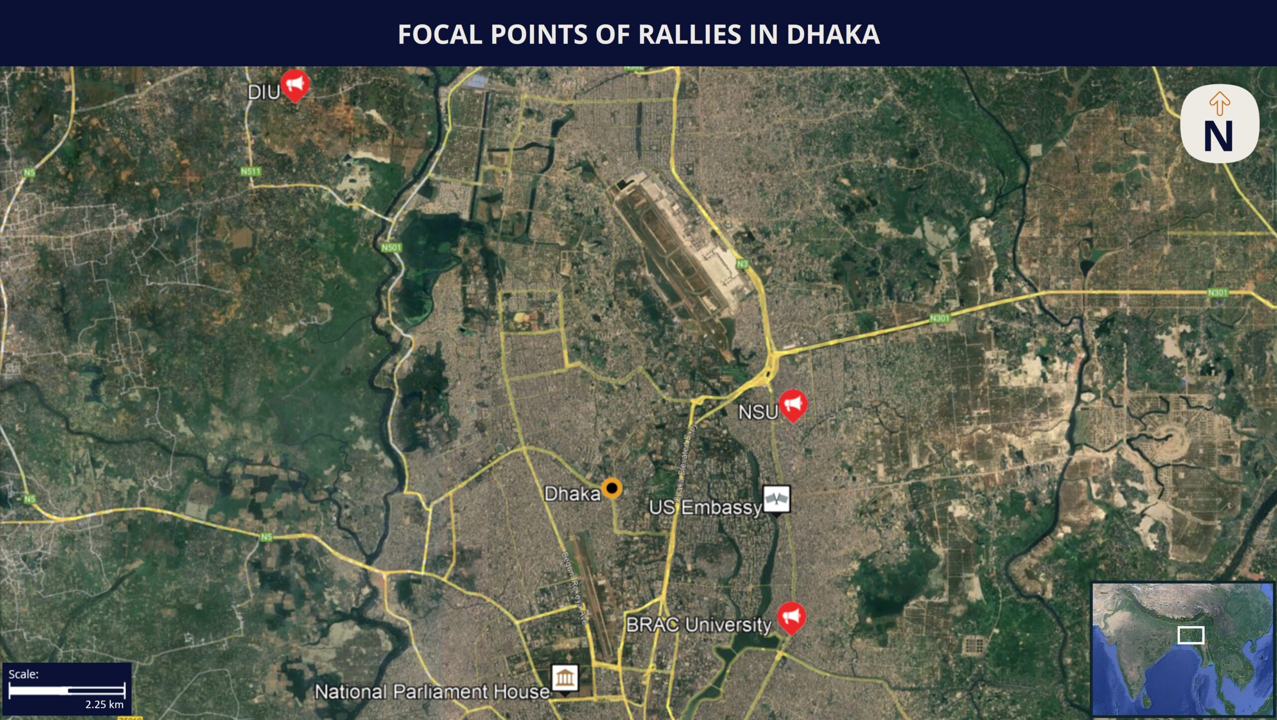 - A rally is being held at Daffodil International University (DIU) in Dhaka at 16:00 on the day.