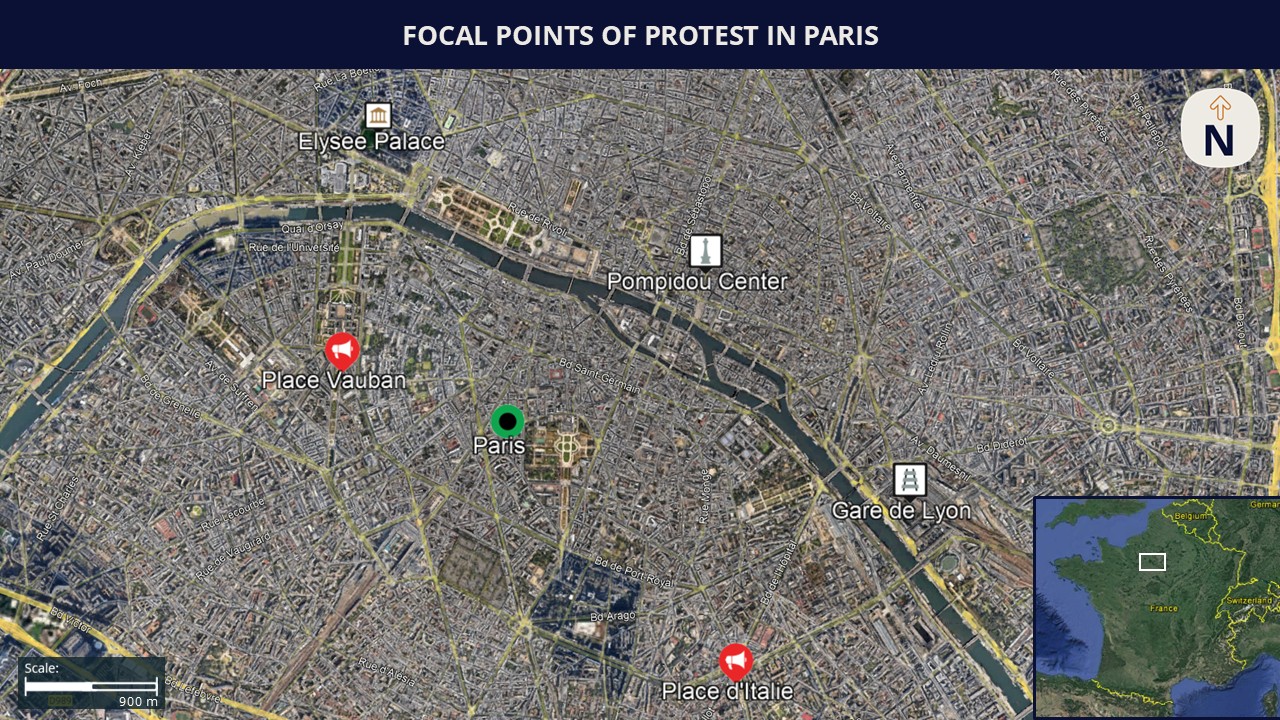 - Hundreds of demonstrations are expected to be organized in France. Information regarding protest locations nationwide can be found here (in French).