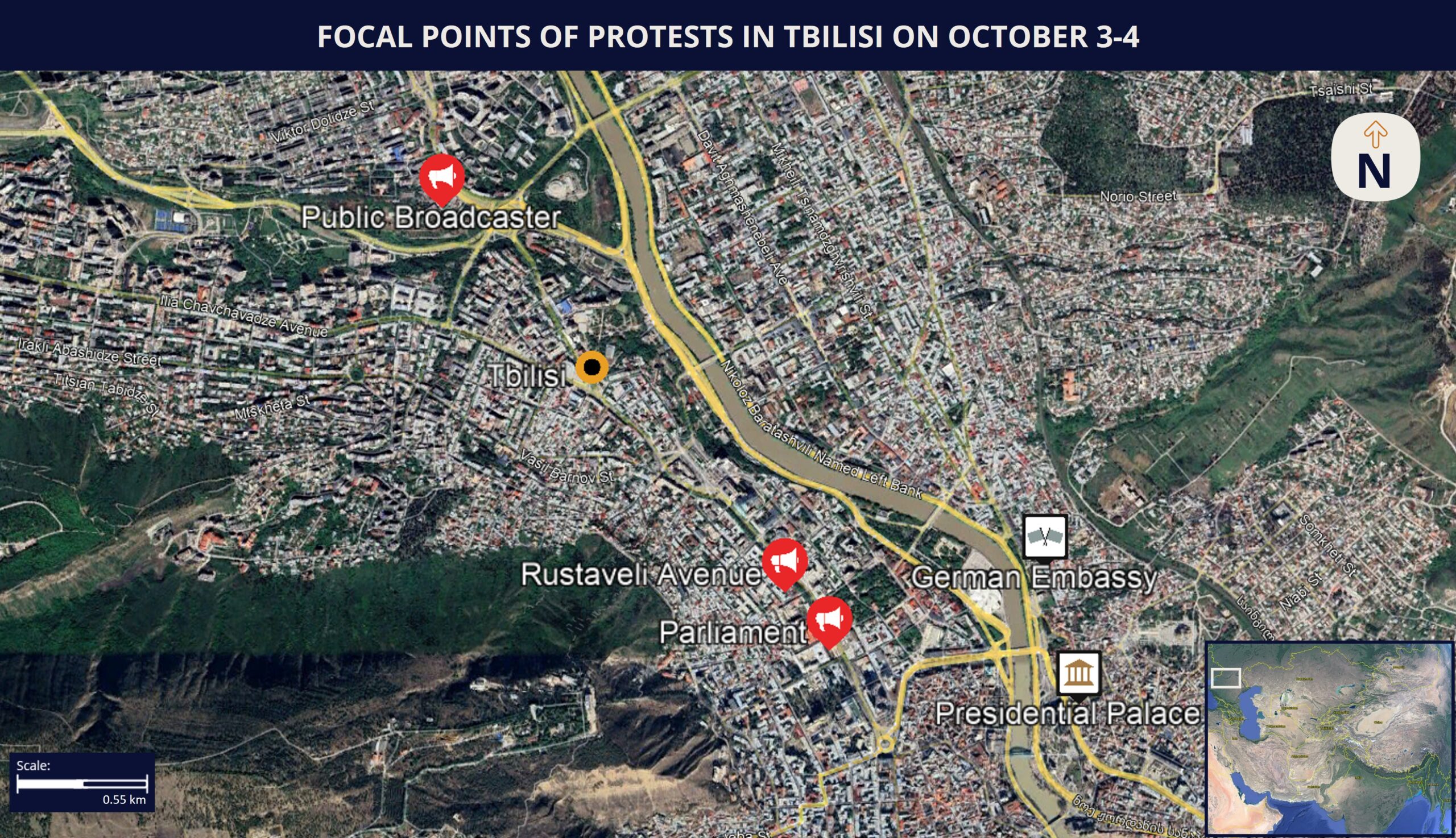- Multiple protests are slated across Tbilisi by anti-government activists and opposition groups outside the Public Broadcaster Building and Parliament from 19:00 (local time) on October 3.