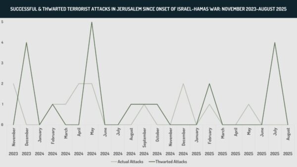 3. Secondly, militants are likely to aspire to conduct attacks on the second anniversary of the Israel-Hamas war on October 7. This is supported by precedent, with three high-profile attacks recorded around this date in October 2024, including in Jaffa, Beer Sheva, and Hadera. FORECAST: Terrorists’ motivation will be further heightened this year, given Israel’s Gaza City offensive, which will constitute a third factor fueling the terrorist threat. Palestinian terror groups and lone wolves will likely attempt to orchestrate attacks to set a price for Israel’s campaign in the coastal enclave.