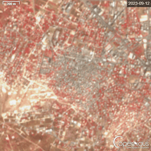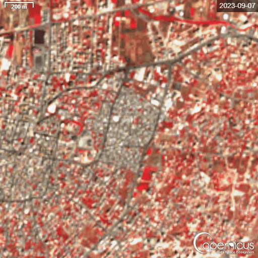 Time-lapse of satellite imagery depicting changes in northern West Bank refugee camps (1- Jenin Camp, 2- Tulkarem Camp, 3- Nur Shams Camp): 2023-2024