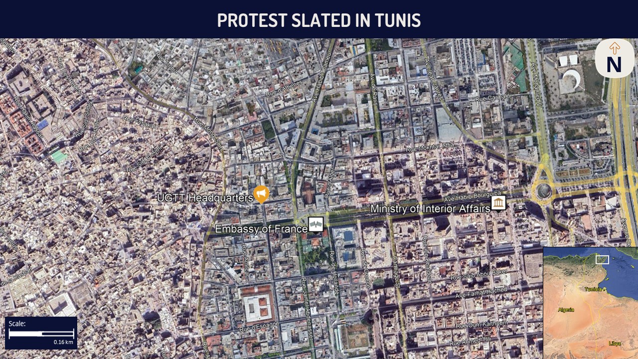 - Maintain vigilance and allot for disruptions near the UGTT headquarters during the morning hours on November 3 in Tunis due to the slated protest.